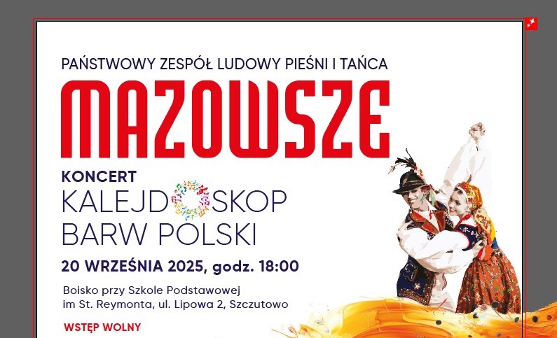Gmina Szczutowo serdecznie zaprasza na wyjątkowy koncert Państwowego Zespołu Ludowego Pieśni i Tańca „Mazowsze” pn. „Kalejdoskop…